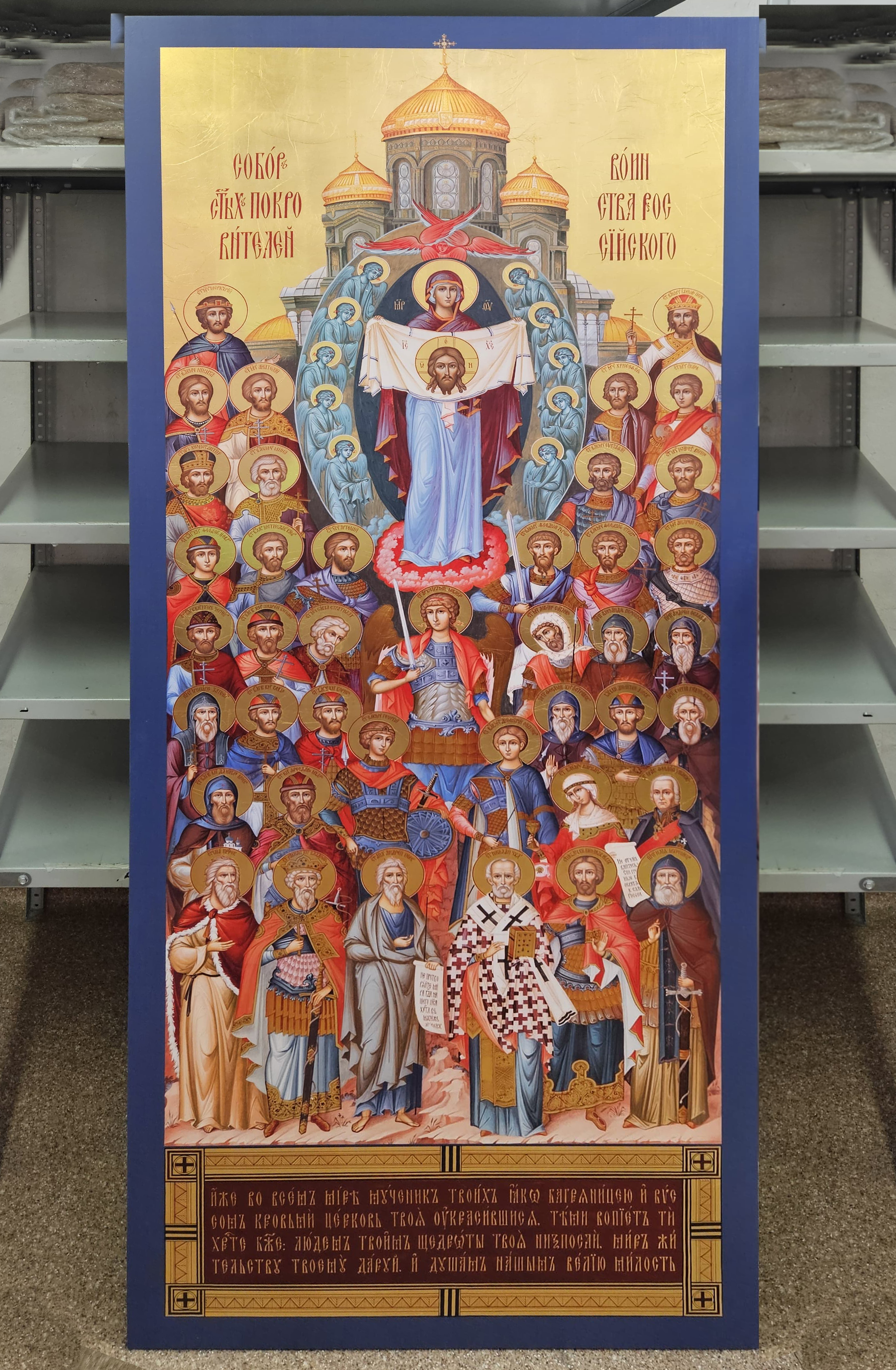 Мы создаем иконы любых размеров до 3,30 х 2,15 м. и на любом материале: дерево, пластик, стекло, картон, керамика, холст и других