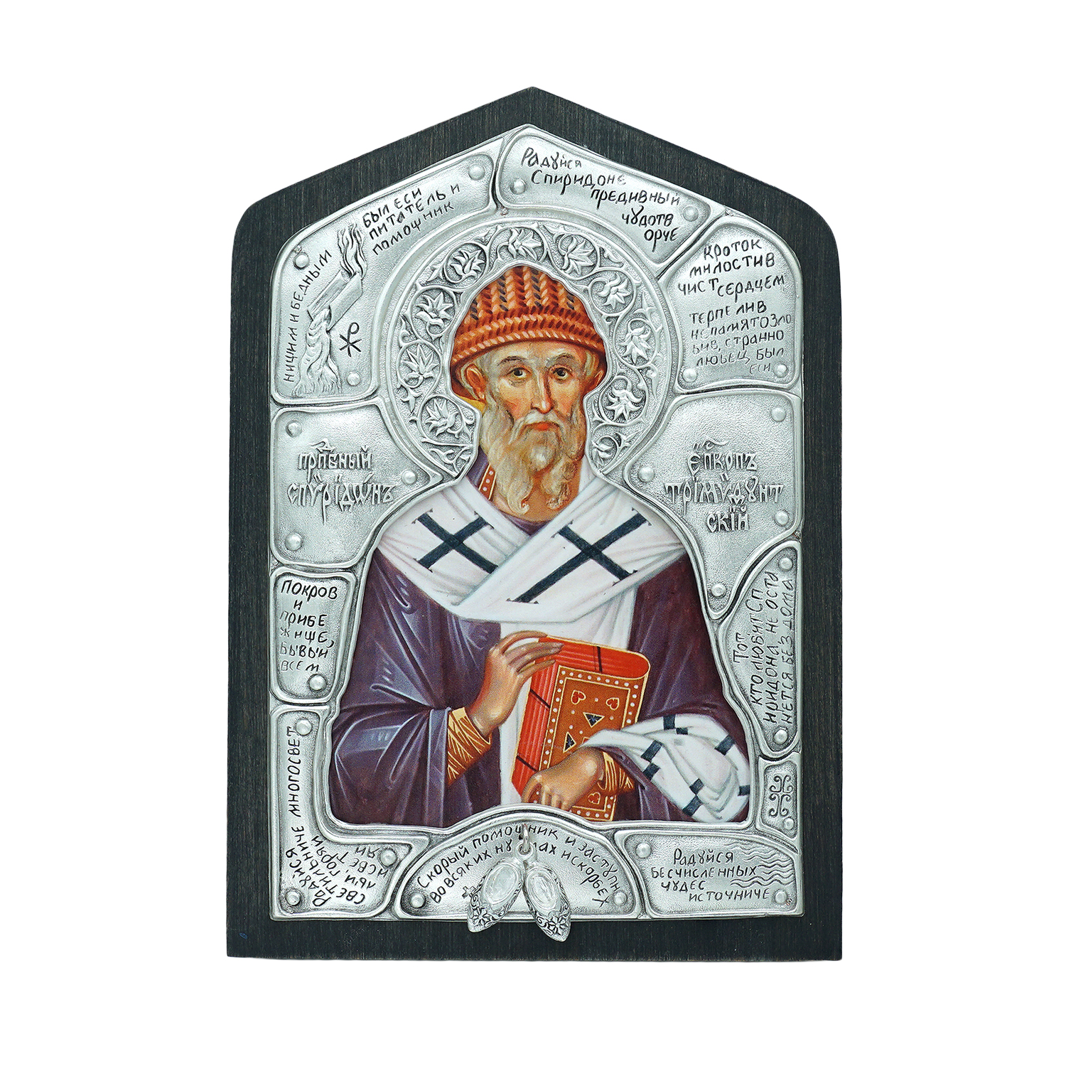 Святитель Спиридон Тримифунтскии родился в конце III века на острове Кипр. О его жизни сведений сохранилось мало. Известно, что он был пастухом, имел жену и детей. Все свои средства он отдавал на нужды ближних и странников, за это Господь вознаградил его даром чудотворения: он исцелял неизлечимо больных и изгонял бесов. После смерти жены, в царствование императора Константина, его рукоположили во епископа Кипрского города Тримифунта. В сане епископа святитель не изменил своего образа жизни, соединив пастырское служение с делами милосердия.
