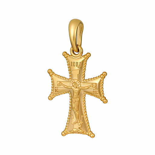Крестик похож на старинный византийский крест. За счет выразительной формы, деликатного объема и обрамления сканью изделие выглядит торжественным и аристократичным.