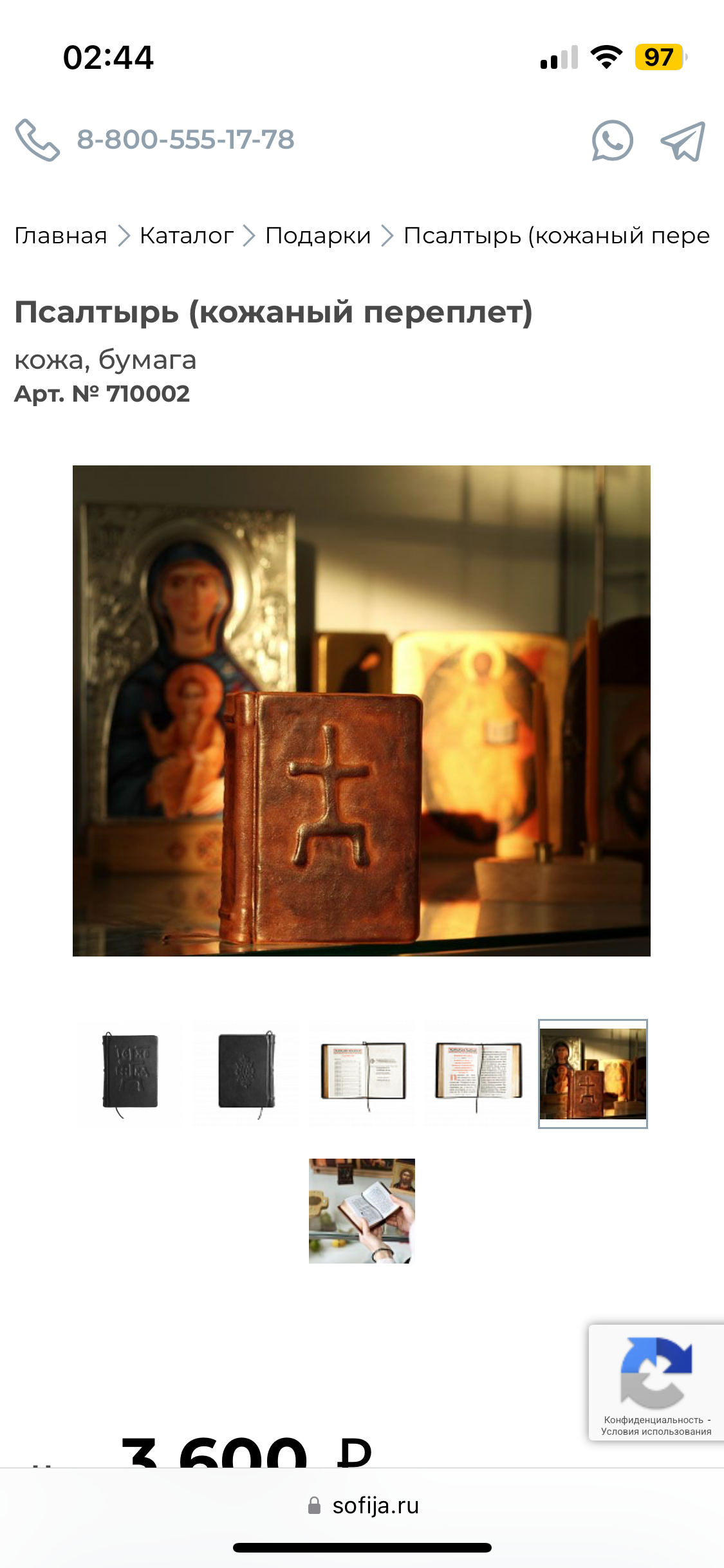 [DETAIL_TEXT_TYPE] => html [~DETAIL_TEXT_TYPE] => html [DATE_CREATE] => 05.04.2018 18:25:35 [~DATE_CREATE] => 05.04.2018 18:25:35 [CREATED_BY] => 22650 [~CREATED_BY] => 22650 [TAGS] => [~TAGS] => [TIMESTAMP_X] => 03.03.2026 16:49:17 [~TIMESTAMP_X] => 03.03.2026 16:49:17 [MODIFIED_BY] => 31544 [~MODIFIED_BY] => 31544 [IBLOCK_SECTION_ID] => 161 [~IBLOCK_SECTION_ID] => 161 [DETAIL_PAGE_URL] => /catalog/izdelia/pravoslavnyy_podarok/psaltyr_kozhanyy_pereplet/ [~DETAIL_PAGE_URL] => /catalog/izdelia/pravoslavnyy_podarok/psaltyr_kozhanyy_pereplet/ [DETAIL_PICTURE] => Array ( [ID] => 38814 [TIMESTAMP_X] => 03.03.2026 16:49:17 [MODULE_ID] => iblock [HEIGHT] => 1499 [WIDTH] => 1500 [FILE_SIZE] => 523304 [CONTENT_TYPE] => image/jpeg [SUBDIR] => iblock/277 [FILE_NAME] => lf3scgl50et9idehvbq3ib9wf87lszm2.jpg [ORIGINAL_NAME] => Псалтырь-(кожаный-переплет)---фас.jpg [DESCRIPTION] => [HANDLER_ID] => [EXTERNAL_ID] => 9db9a508a7c5e870e5cd7a9e2fa7da97 [VERSION_ORIGINAL_ID] => [META] => [SRC] => /upload/iblock/277/lf3scgl50et9idehvbq3ib9wf87lszm2.jpg [UNSAFE_SRC] => /upload/iblock/277/lf3scgl50et9idehvbq3ib9wf87lszm2.jpg [SAFE_SRC] => /upload/iblock/277/lf3scgl50et9idehvbq3ib9wf87lszm2.jpg [ALT] => Псалтырь (кожаный переплет) [TITLE] => Псалтырь (кожаный переплет) [RESIZED_SRC] => /upload/resize_cache/iblock/277/513_513_1/lf3scgl50et9idehvbq3ib9wf87lszm2.jpg ) [~DETAIL_PICTURE] => 38814 [PREVIEW_PICTURE] => Array ( [ID] => 38819 [TIMESTAMP_X] => 03.03.2026 16:49:17 [MODULE_ID] => iblock [HEIGHT] => 362 [WIDTH] => 422 [FILE_SIZE] => 30205 [CONTENT_TYPE] => image/jpeg [SUBDIR] => iblock/95f [FILE_NAME] => 8bhk2fwehuq0nez0h4ecw6v82xy5oh5p.jpg [ORIGINAL_NAME] => Псалтырь_кожаный_переплет_фас_плашка_.jpg [DESCRIPTION] => [HANDLER_ID] => [EXTERNAL_ID] => 180bbfb12d9d1a1940255a2f84fc439d [VERSION_ORIGINAL_ID] => [META] => [SRC] => /upload/iblock/95f/8bhk2fwehuq0nez0h4ecw6v82xy5oh5p.jpg [UNSAFE_SRC] => /upload/iblock/95f/8bhk2fwehuq0nez0h4ecw6v82xy5oh5p.jpg [SAFE_SRC] => /upload/iblock/95f/8bhk2fwehuq0nez0h4ecw6v82xy5oh5p.jpg [ALT] => Псалтырь (кожаный переплет) [TITLE] => Псалтырь (кожаный переплет) ) [~PREVIEW_PICTURE] => 38819 [LIST_PAGE_URL] => /catalog/izdelia/ [~LIST_PAGE_URL] => /catalog/izdelia/ [CANONICAL_PAGE_URL] => /catalog/izdelia/pravoslavnyy_podarok/psaltyr_kozhanyy_pereplet/ [~CANONICAL_PAGE_URL] => /catalog/izdelia/pravoslavnyy_podarok/psaltyr_kozhanyy_pereplet/ [LANG_DIR] => / [~LANG_DIR] => / [EXTERNAL_ID] => 23312 [~EXTERNAL_ID] => 23312 [IBLOCK_TYPE_ID] => catalog [~IBLOCK_TYPE_ID] => catalog [IBLOCK_CODE] => izdelia [~IBLOCK_CODE] => izdelia [IBLOCK_EXTERNAL_ID] => furniture_s1 [~IBLOCK_EXTERNAL_ID] => furniture_s1 [LID] => s1 [~LID] => s1 [IPROPERTY_VALUES] => Array ( [SECTION_META_TITLE] => Купить православные подарки в интернет-магазине София, магазин православных подарков для детей [SECTION_META_DESCRIPTION] => В интернет магазине православных ювелирных товаров София, вы можете выбрать и купить оригинальные православные подарки из каталога. [SECTION_PAGE_TITLE] => Православные подарки [ELEMENT_META_TITLE] => Псалтырь (кожаный переплет) [ELEMENT_META_DESCRIPTION] => Купить Псалтырь (кожаный переплет) для себя или сделать подарок близким вам людям из каталога православных ювелирных изделий. Мастера православного интернет-магазина София, делают ювелирные изделия с любовью и заботой. Определившись с выбором можно позвонить по телефону или оформить заказ на сайте София, после чего наши менеджеры вам перезвонят и подтвердят заказ. ) [PRODUCT] => Array ( [TYPE] => 1 [AVAILABLE] => Y [BUNDLE] => N [QUANTITY] => 1000 [QUANTITY_TRACE] => N [CAN_BUY_ZERO] => N [MEASURE] => 5 [SUBSCRIBE] => N [VAT_ID] => 2 [VAT_RATE] => 18 [VAT_INCLUDED] => Y [WEIGHT] => 0 [WIDTH] => 0 [LENGTH] => 0 [HEIGHT] => 0 [PAYMENT_TYPE] => S [RECUR_SCHEME_TYPE] => D [RECUR_SCHEME_LENGTH] => 0 [TRIAL_PRICE_ID] => 0 [USE_OFFERS] => ) [~CATALOG_TYPE] => 1 [CATALOG_TYPE] => 1 [~CATALOG_QUANTITY] => 1000 [CATALOG_QUANTITY] => 1000 [~CATALOG_QUANTITY_TRACE] => N [CATALOG_QUANTITY_TRACE] => N [~CATALOG_CAN_BUY_ZERO] => N [CATALOG_CAN_BUY_ZERO] => N [~CATALOG_SUBSCRIBE] => N [CATALOG_SUBSCRIBE] => N [PROPERTIES] => Array ( [EXT_SORT] => Array ( [ID] => 1814 [IBLOCK_ID] => 3 [NAME] => Дополнительная сортировка [ACTIVE] => Y [SORT] => 1 [CODE] => EXT_SORT [DEFAULT_VALUE] => 500 [PROPERTY_TYPE] => N [ROW_COUNT] => 1 [COL_COUNT] => 30 [LIST_TYPE] => L [MULTIPLE] => N [XML_ID] => [FILE_TYPE] => [MULTIPLE_CNT] => 5 [LINK_IBLOCK_ID] => 0 [WITH_DESCRIPTION] => N [SEARCHABLE] => N [FILTRABLE] => N [IS_REQUIRED] => N [VERSION] => 1 [USER_TYPE] => [USER_TYPE_SETTINGS] => Array ( ) [HINT] => [~NAME] => Дополнительная сортировка [~DEFAULT_VALUE] => 500 [VALUE_ENUM] => [VALUE_XML_ID] => [VALUE_SORT] => [VALUE] => 12 [PROPERTY_VALUE_ID] => 719392 [DESCRIPTION] => [~VALUE] => 12 [~DESCRIPTION] => ) [ICONA_ZAKAZ] => Array ( [ID] => 1815 [IBLOCK_ID] => 3 [NAME] => Икона под заказ? [ACTIVE] => Y [SORT] => 1 [CODE] => ICONA_ZAKAZ [DEFAULT_VALUE] => [PROPERTY_TYPE] => L [ROW_COUNT] => 1 [COL_COUNT] => 30 [LIST_TYPE] => C [MULTIPLE] => N [XML_ID] => [FILE_TYPE] => [MULTIPLE_CNT] => 5 [LINK_IBLOCK_ID] => 0 [WITH_DESCRIPTION] => N [SEARCHABLE] => N [FILTRABLE] => N [IS_REQUIRED] => N [VERSION] => 1 [USER_TYPE] => [US